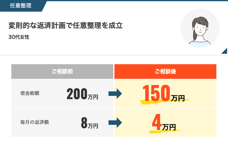 【事例1】任意整理で毎月の返済額が軽減されたケース